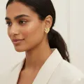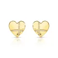 Brinco de escudo de coração liso com microzircônias cristal, banhado em Ouro 18k.