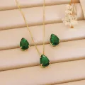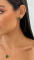 Conjunto brinco e colar pedra verde